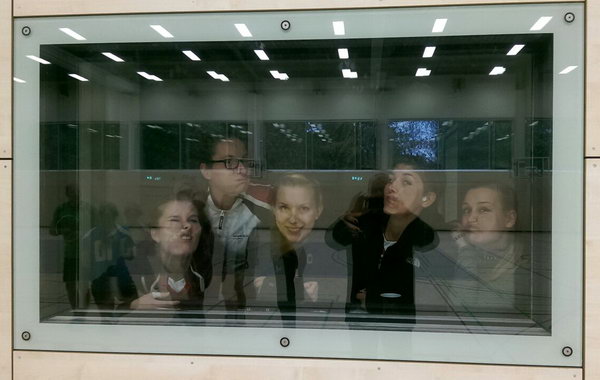 Unsere Szene war für den Nachmittag geplant, weswegen wir viel Zeit hatten, dem Kamera-Team zuzuschauen, zu essen oder nach Möglichkeit nicht im Weg rum zu stehen. Die freudige Alternative war das Vorhandensein einer „Maske“, auf die sich die ersten Mädels stürzten und fachmännisch die Haare flechten ließen. An der Stelle muss erwähnt werden, dass laut Maskenbildnerin keiner von uns nachgeschminkt wurden musste. Das sind doch die optimalen Voraussetzungen für eine Karriere im Rampenlicht! Da nun unser Styling beendet war, kümmerten wir uns um Trainer Oli und sein Outfit. Dieser hatte sich kurz zuvor in ein Trikot Größe S gequetscht und stand nun im Raum – immer bemüht möglichst gleichmäßig zu atmen, damit das Shirt nicht platzte. Obwohl wir alle etwas für hautenge Oberteile an Männern übrig haben, wurde dieses Trikot schnell gegen ein etwas weiteres Objekt ausgetauscht, welches im Drehverlauf auch die trainerüblichen hektischen Armbewegungen zuließ. Immer noch wurde gedreht und die Langeweile der Elfen wandelte sich mit der Zeit in sinnloses Verhalten um. Dieses gipfelte schließlich darin, dass wir alle mit platt gedrückten Gesichtern an der Scheibe der Steuerungszentrale hingen, um wenigstens die Klotzsche-Mädels zu unterhalten, deren Aufgabe es war im Szenenbildhintergrund die „aufgeregte Bank“ darzustellen.