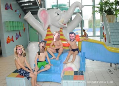 Nach gemütlicher Fahrt, ohne jede Zwischenfälle, schlüpfen wir in unsere viel zu engen Badehosen. Jauchzend stürzt sich Matti als erster ins kühle Nass. Hendrik wagt einen Köpper vom Drei-Meter-Turm. Seine Fingerspitzen durchbrechen die Wasseroberfläche bereits, während seine Füße gerade das Brett verlassen. White, Koe und Hoffi wagen sich als Teufelsdreier eng umschlungen an die große Röhrenrutsche, Schweineschmidt jagt Karl in Erwartung einer ertragreichen Ernte über den rutschigen Hallenboden und ich übe mit meiner Taucherbrille das Ring-Hochholen aus brusttiefem Wasser. Die einzige Aufgabe, die mir noch zum erfolgreichen Absolvieren der Seepferdchenprüfung fehlt. Es ist fast zu schön um wahr zu sein. Nur Jörg und Paul streiten sich natürlich mit dem Bademeister über die Baderegeln. Der sieht fast so aus wie der Hans-Christian, oder ist das der Wolf aus Riesa?! Unvermittelt pfeift er energisch mit seiner Trillerpfeiffe und hört gar nicht mehr auf… – Shit! Der Wecker! Ein Blick aufs Handy verrät die bange Gewissheit: Shit! Shit! Shit! 20 Minuten noch bis zum Treffpunkt. Schnell um die leeren, sorgfältig ums Bett drapierten Flaschen herum balanciert, in die Hose geschlüpft, Sportsachen in die Sporttasche geschleudert und ein trockenes Brötchen in den pappigen Mund geschoben. Die Treppe runtergehetzt und aufs Fahrrad gestürzt. Kurz vor der Halle: Tempo drosseln und lässig auf den Parkplatz rollen. 14:59. Puh, das war eng!